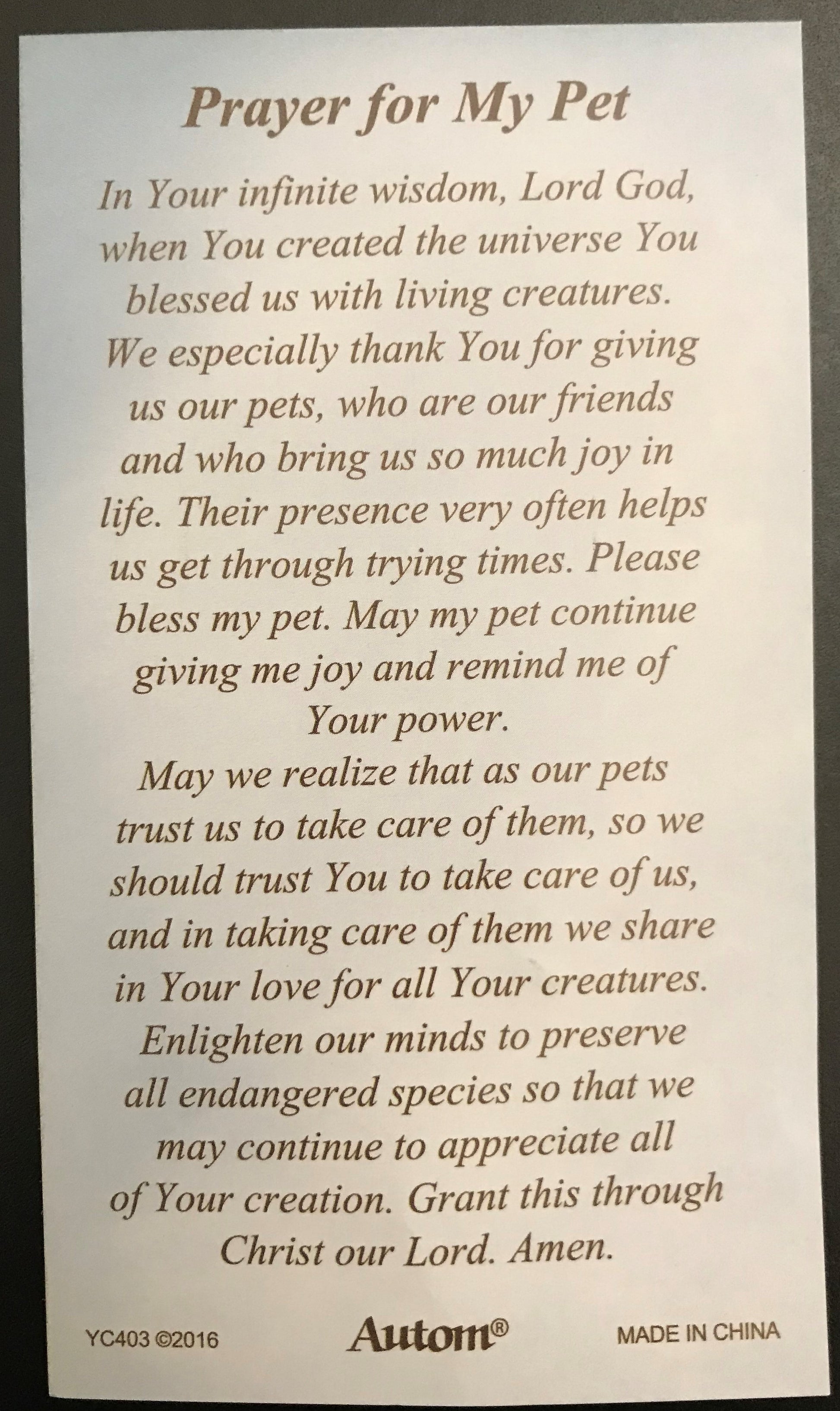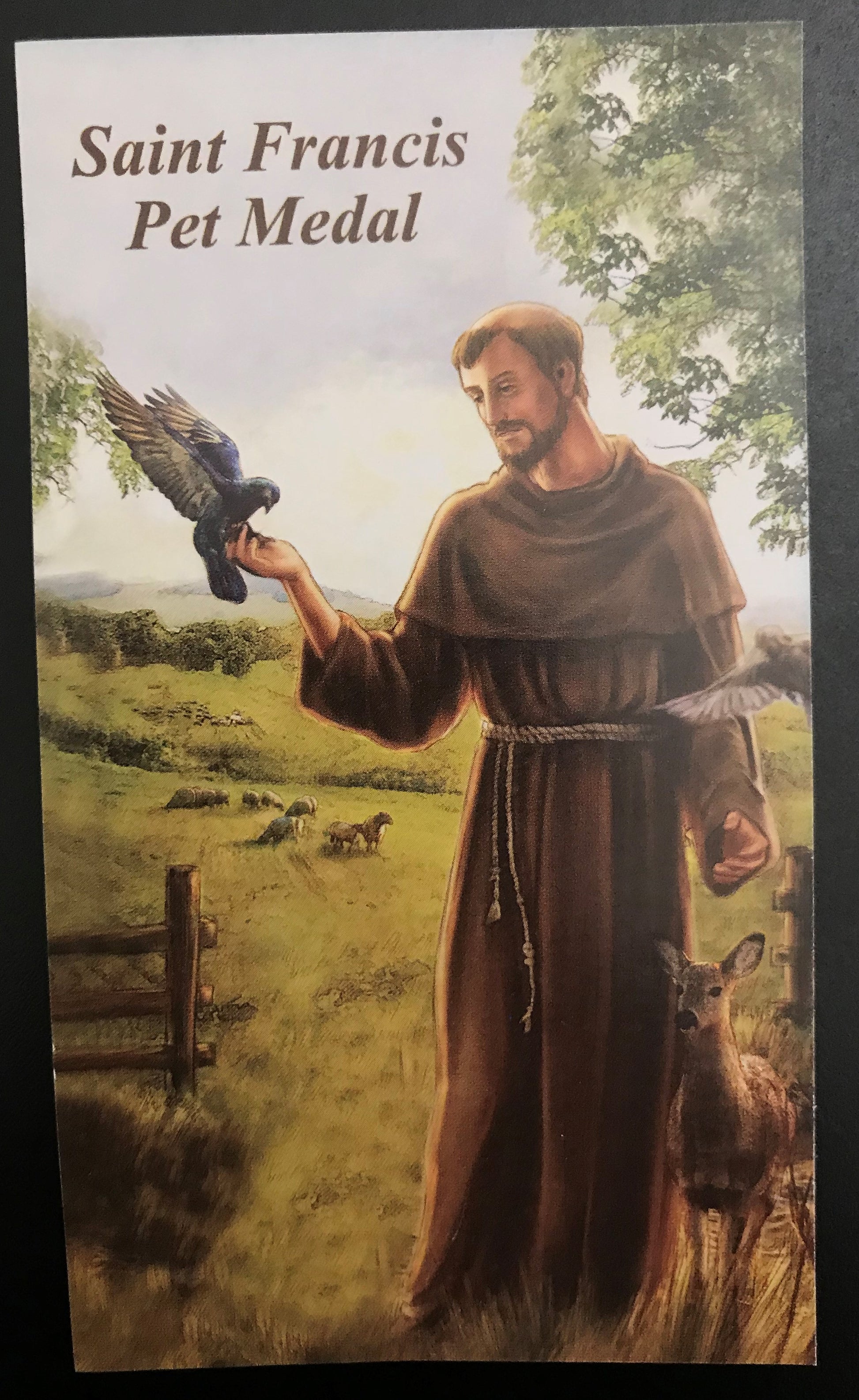 This stainless steel pet medal comes with an image of St. Francis with animals and the wording "Saint Francis of Assisi Protector of Animals". Includes a split ring style hanger and comes carded. Perfect for any cat or dog owner.